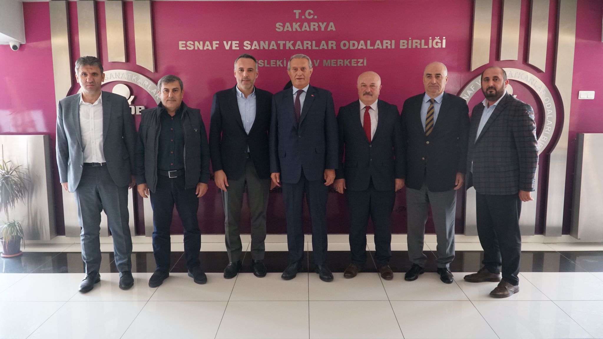 AK Parti Sakarya İl Başkanı Yunus Tever ve yönetim kurulu üyeleri, Sakarya Esnaf ve Sanatkarlar Odaları Birliği Yönetim Kurulu Başkanı Hasan Alişan'ı ziyaret etti.