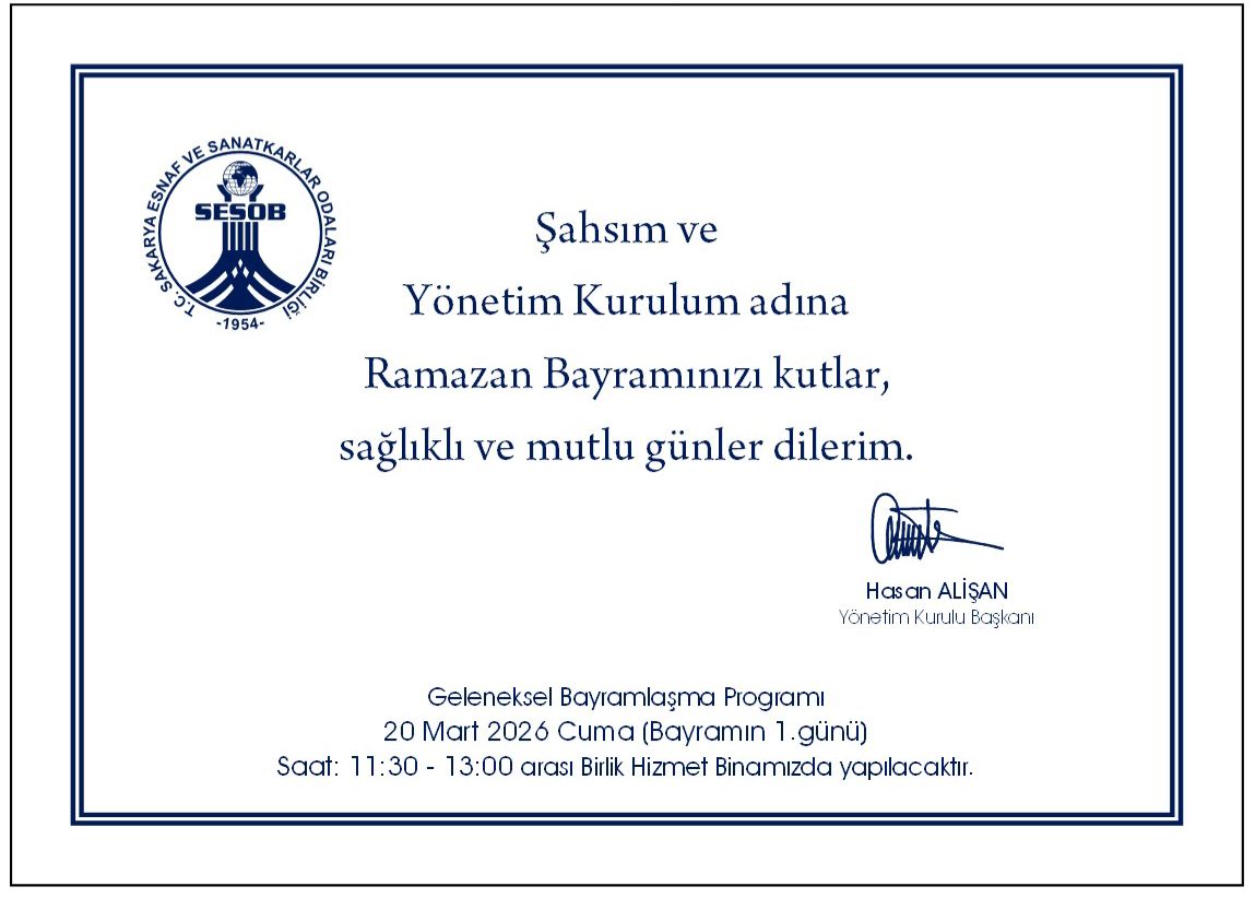 Öte yandan Alişan, 20 Mart 2026 Cuma günü Ramazan Bayramı’nın birinci günü saat 11.30 ile 13.00 arasında SESOB Hizmet Binasında gerçekleştirilecek olan Geleneksel Bayramlaşma Programına tüm esnaf ve sanatkârları davet etti.