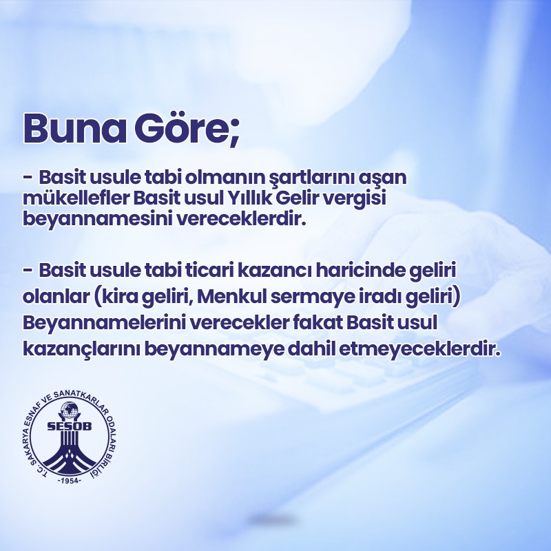 -    Basit usule tabi ticari kazancı haricinde geliri olanlar (kira geliri, Menkul sermaye iradı geliri) Beyannamelerini verecekler fakat Basit usul kazançlarını beyannameye dahil etmeyeceklerdir.