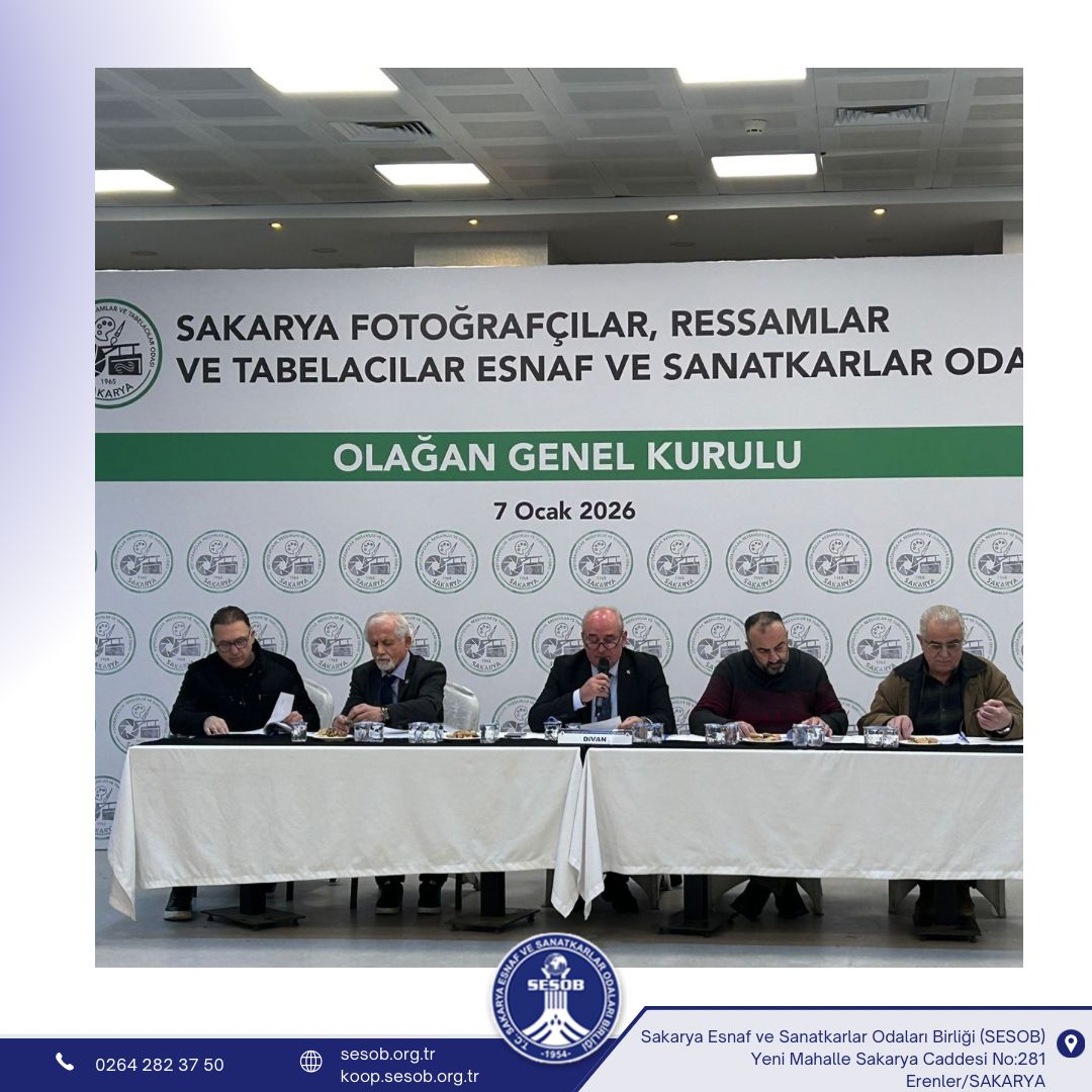 07.01.2026: Sakarya Fotoğrafçılar Ressam ve Tabelacılar Esnaf ve Sanatkarlar Odası nda mevcut Başkan Cevat DAVULCU iki adaylı seçime giderek 134 oy ile güven tazeleyerek tekrar seçildi.